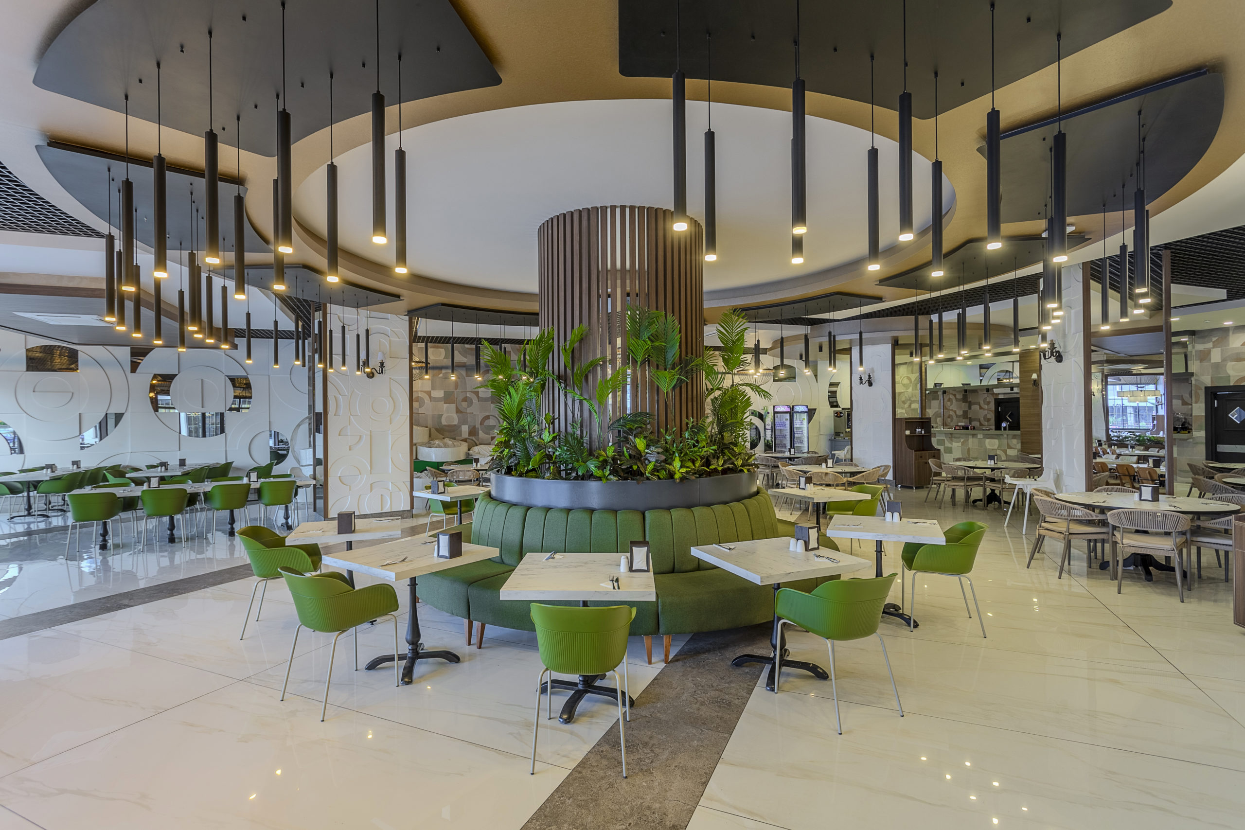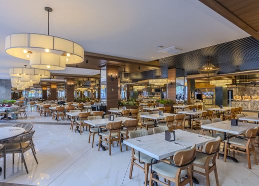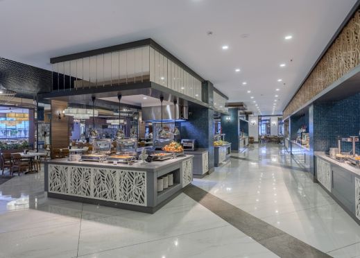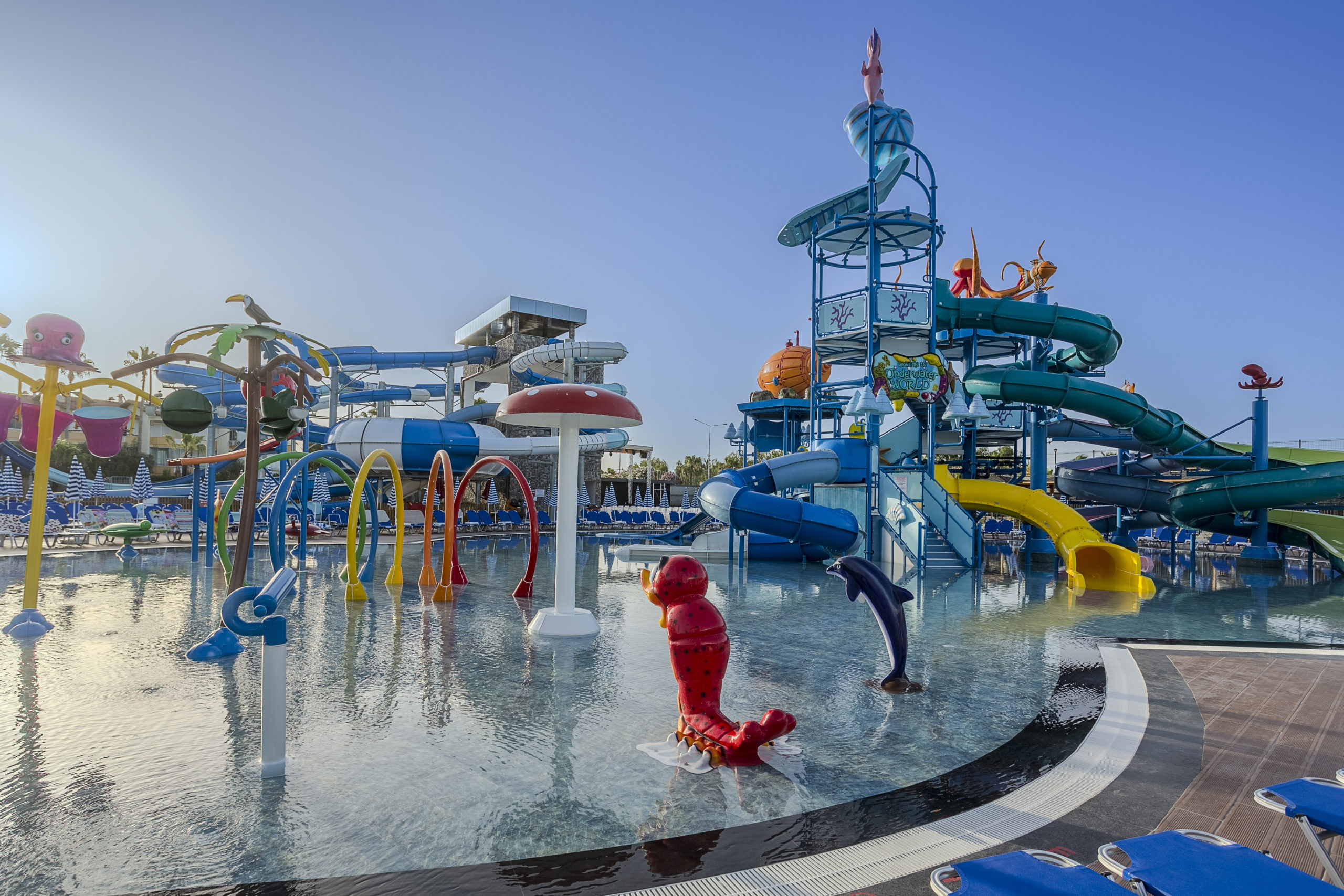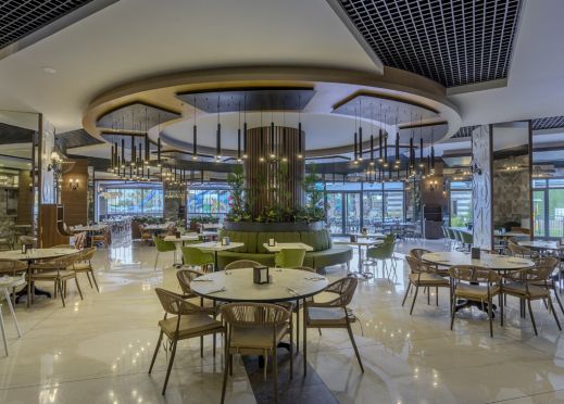 Основен ресторант, 1 а-ла-карт ресторант с предварителна резервация, съгласно концепцията на хотела), сладкарница, бургер бар Burgerland (24/7), 9 бара (1 от които 24/7 и 2 от които са разположени на територията на Etftalia Island, 8 открити басейна, водни пързалки, СПА център, дискотека (на територията на Etftalia Island), магазини, конферентна зала, паркинг.