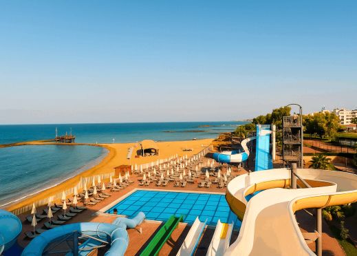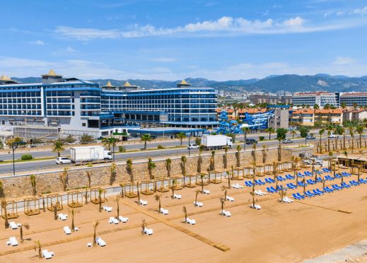 Намира се на 100 км от летище Анталия, на 110 км от центъра на Анталия, на 18 км от центъра на Алания, на 250 м от брега на морето, чрез подлез. Построен 2024 г., на обща площ от 43 000 м2. Достъп до Еftalia Island, разположен на плажа, състоящ се от аквапарк с басейни, водни пързалки и заведения.