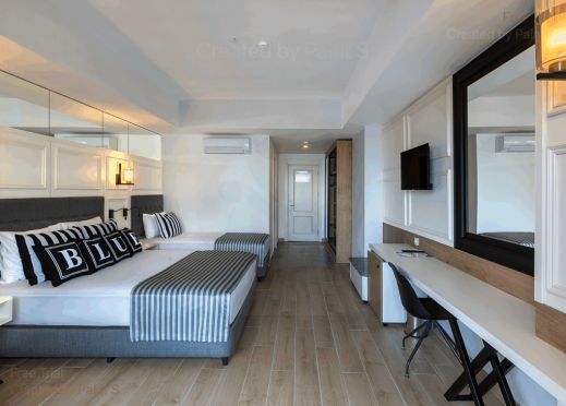 Стаи Main Building: 90 Standard room (30 м2), 101 Family Large room (1 спалня, 1 баня - 35 м2),  248 Family Room A (2 спални, 1 баня - 70 м2).