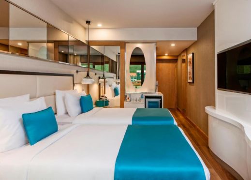 Хотелът разполага с 93 Deluxe room land view/ side sea view/ sea view. Всички стаи са оборудвани с климатик, телевизор, телефон, баня с душ/вана, сешоар, мини бар (безплатно - ежедневно зареждане с вода), сейф. Почистване на стаите- всеки ден, смяна на спално бельо и кърпи- 2 пъти в седмицата.
