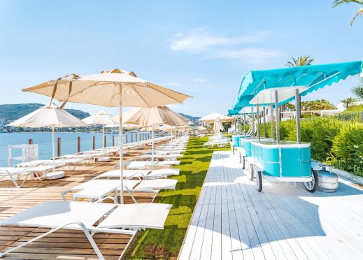 Собствен, платформа. Чадъри, шезлонги и плажни кърпи на плажа и при басейна – безплатно.