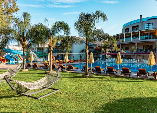 Oсновен ресторант, 3 бара, външен басейн, водна пързалка, СПА център.