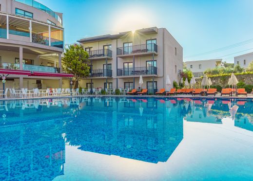 Намира се на 35 км от летище Бодрум, на 1 км от центъра на Бодрум, на 1 км от центъра на Гюмбет, на брега на морето. Построен 2011 г., на обща площ от 18 000 м². Реновиран 2022 г.