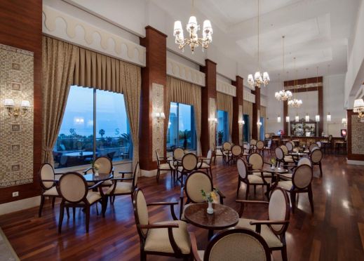 Основен ресторант, 2 а - ла - карт ресторанта, 6 бара, 3 басейна, аквапарк. За децата: детски басейн, аквапарк, анимация Безплатни услуги: сауна, турска баня, фитнес, аеробика, мини клуб, мини - футбол, дискотека - напитки платено, безжичен интернет в лоби бар, баскетбол, сейф, дартс. Платени услуги: масаж, детегледачка, осветление тенис корт, билярд, уроци по тенис, водни спортове, фризьор, Интернет кафе, мини футбол, център за красота, СПА-център, билярд. Плаж: Пясъчно - чакълест. Плажни чадъри, матраци и шезлонги – безплатно.