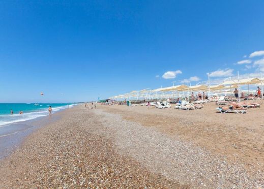 Собствен, пясъчно-чакълест плаж, на 500 м от хотела. Безплатен шатъл до плажа (по разписание). Чадъри, шезлонги, матраци и плажни кърпи на плажа и при басейна - безплатно. Душ, кабина за преобличане, спасител, бар на плажа.
