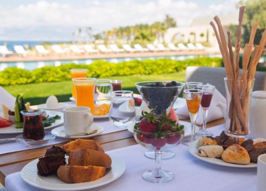 Основен ресторант, а-ла-карт ресторант, лоби бар, бар при басейна, снек бар на плажа, открит басейн, СПА център (2500 м2, термален басейн, таласо басейн, закрит басейн, джакузи, турска баня, парна баня, сауна, солна стая, леден фонтан), фитнес център, 2 тенис корта, 1 баскетболно игрище, игрище за мини футбол,конферентен център, паркинг. За децата: детски басейн.