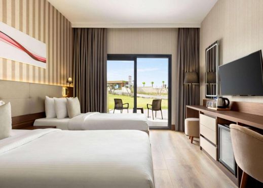 Хотелът разполага със 77 комфортни стаи (22 кв.м.) и 1 стая за инвалиди, всички оборудвани с климатик, телефон, телевизор, баня с душ/вана, сешоар, минибар, сет за чай/кафе, сейф, ютия, балнон.