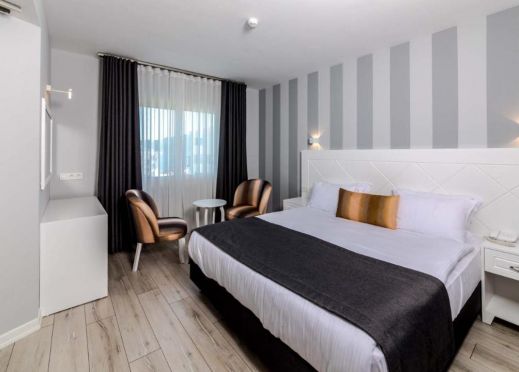 Хотелът разполага с общо 69 стаи, разположени в една основна сграда, от които Standard room (спалня или двойно легло), Family room (две преходни стаи, 1 баня, до 4 човека). Всички стаи са оборудвани с климатик, телевизор, телефон, баня с душ, сешоар, мини бар (платен), сейф (платен), балкон. Почистване на стаите – всеки ден, смяна на спалното бельо и кърпите – 2 пъти в седмицата.