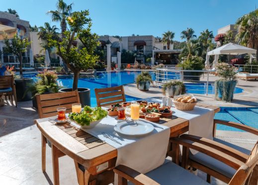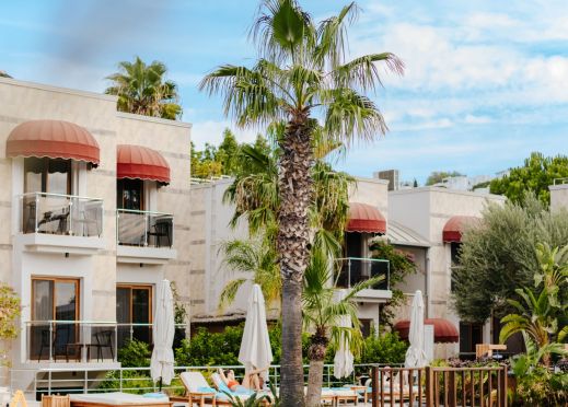 Намира се на 36 км от летище Бодрум, на 1 км от центъра на Бодрум, на 1 км от центъра на Гюмбет, на втора линия. Построен 2006 г., на обща площ от 4000 м².