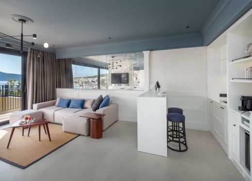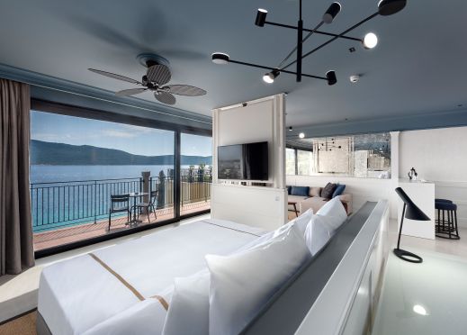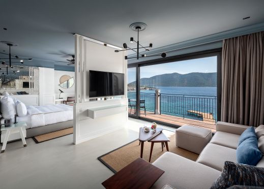 Хотелът разполага с 24 Deluxe Rooms и 10 Suites, всички с гледка към морето: 14 Deluxe Garden Sea View (35 m², с директен достъп до инфинити басейн и шезлонг), 10 Deluxe Balcony Sea View Room (35 m²), Deluxe Beachfront Room (50 m², с директен достъп до плажа и балкон), 1 One Bedroom Beachfront Suite (70 m², състои се от 1 спалня, 1 трапезария,1 баня, с директен достъп до плажа), 1 Two Bedroom Beachfront Suite (75 m², състои се от 2 спални с едно двойно легло и две единични легла, 1 трапезария, 2 бани, тераса с директен достъп до плажа), 2 Junior Suite (90 m², състои се от 1 спалня, 1 гардеробна и тераса с шезлонги), 1 Bodrum Suite (100 m², състои се от 1 трапезария с кухня, 1 спалня, 1 гардеробна и 2 бани), 3 Jacuzzi Suite (80 - 110 m², състои се от 1 спалня, 1 трапезария, 1 гардеробна, 1 баня и джакузи на терасата), 1 Pool Suite (130 m², състои се от 1 трапезария, 2 спални и 3 бани, има собствен басейн), 1 Casa Nonna Suite (състои се от две отделни помещения: Bodrum Suite и Jacuzzi Suite, свързани с врата; общо 2 спални, 4 бани и 2 хола).