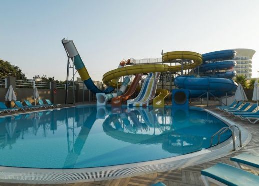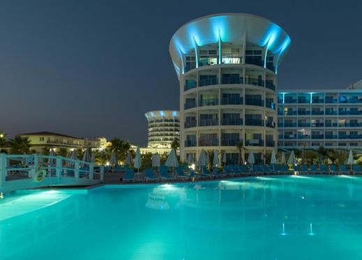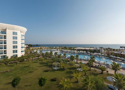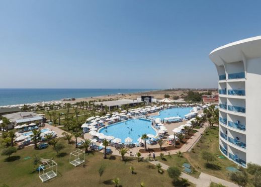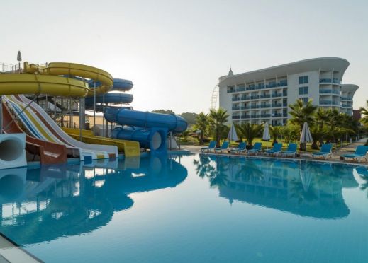 Основен ресторант, 3 алакарт ресторанта - рибен, италиански и турски, 3 бара (лоби бар, снек бар и бар на плажа), 2 външни басейна (един с 8 пързалки и един релакс басейн), 1 външен детски басейн и 1 вътрешен, конферентна зала, магазин, СПА център, водни пързалки. Безплатни услуги: паркинг, безжичен интернет (в общите части), сауна, парна баня, фитнес, тенис на маса, дартс, плажен волейбол, вечерни развлекателни програми Платени услуги: СПА център, масаж, химическо чистене, пране, фризьорски салон, обмяна на валута, сейф, водни спортове За децата: водни пързалки, анимация, детски кът за игра, детска площадка, детско меню, детска дискотека