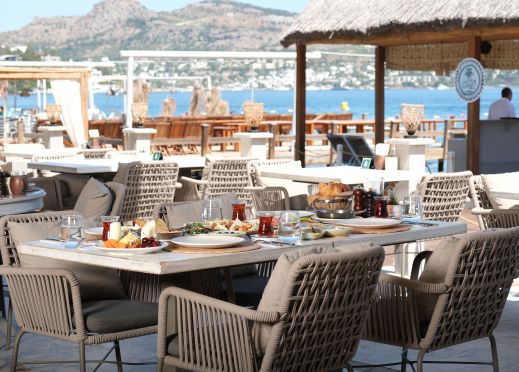 Намира се на 44 км от летище Бодрум, на 18 км от центъра на Бодрум,в района на Тюркбюкю, на брега на морето. Реновиран 2025 г.