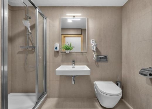 Всички стаи са обзаведени с основни мебели: легла с удобни матраци, гардероб, бюро, телевизор с плосък екран, минихладилник, самостоятелна баня с душ, тоалетни принадлежности и сешоар. Стаите разполагат с централно отопление и добри шумоизолационни прозорци.