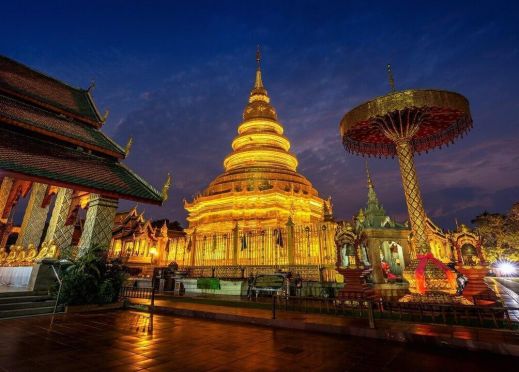 - Разглеждане на храма Wat Phra That Hariphunchai в Лампун;