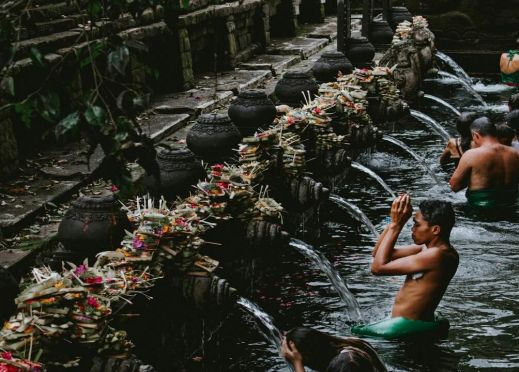Тирта Емпул е свещен воден храм, известен със своите изворни басейни, където местните и посетителите извършват ритуали за пречистване. Гунунг Кави впечатлява със своите древни скални светилища, издълбани в скалите сред живописна джунгла. Храмът Бесаких, наричан „Майчиният храм“ на Бали, е най-големият и значим религиозен комплекс на острова, разположен по склоновете на вулкана Агунг.