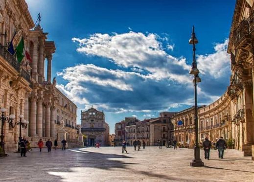 Площад Ил Дуомо, където се намира великолепната катедрала и църквата „Света Лучия“, в която се съхранява оригиналът на прочутото платно на Караваджо - „Погребението на Света Лучия“