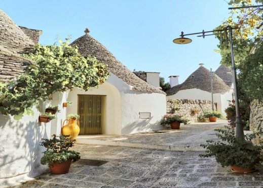Отпътуване от хотела за Алберобело – посещение на „визитната картичка на Пулия“. Алберобело е град с толкова особено обаяние, че е трудно да се ориентирате в коя страна сте или на коя планета се намирате. Столицата на трулите сякаш Ви пренася в света на приказките. Трулите са малки бели къщички с конусовидни покриви. Градени без всякаква спойка, те са една от най-големите данъчни измами през средновековието. В близост до главния площад се намира църквата „Санта Лучия”, както и градския музей „Територио”. Музеят е направен от 10 трули обединени в една. В музея може да се види историята на създаването на трулите и как обитателите им са живеели в тях в миналото. Алберобело има и други по-малки музеи, които предлагат на туристите сувенири и почти всичко, което една селска къща произвежда. В цената е включена дегустация на домашно произведени ликьори и сладки.