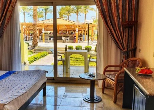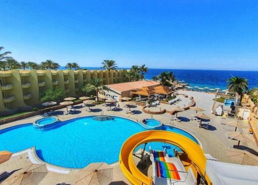 Palm Beach Resort 4* е обзаведен в модерен стил, а обстановката и атмосферата са традиционни за Египет. Хотелът разполага с прекрасни гледки към Червено море, с 2 басейна, собствен пясъчен плаж и клуб по гмуркане. Гостите на хотела имат на разположение още: ресторант с международна кухня, бар с напитки и леки закуски, релаксиращи масажи, сауна и фитнес, екип от аниматори, организиращи различни занимания и игри през целия ден. Центърът по гмуркане - The Caves, предлага различен тип водни спортове, като гмуркане, шнорхелинг и уиндсърф.