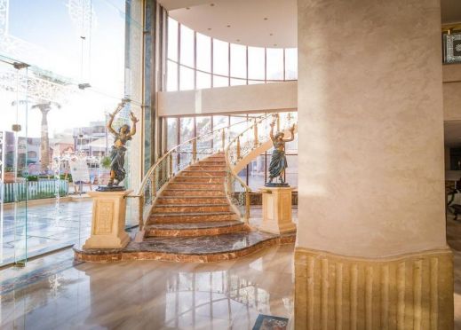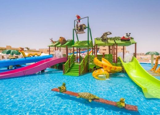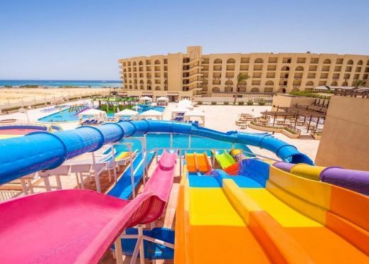 Sunny Days El Palacio предлага автентична ориенталска архитектура, просторна територия, частен плаж, лагуна и мост, водещ към малък остров. Хотелът разполага с открити басейни, аквапарк зона за деца, основен ресторант, тематични ресторанти, барове, амфитеатър, СПА център и търговски обекти.