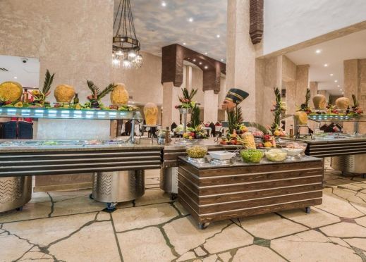 Концепцията е All Inclusive – закуска, обяд, вечеря на блок маса, леки следобедни закуски, сладкиши, местни алкохолни и безалкохолни напитки в определени часове от деня. Хотелът разполага с основен ресторант и няколко а ла карт ресторанта (италиански, ориенталски и рибен), както и разнообразни барове – лоби бар, бар на плажа, бар при басейна.