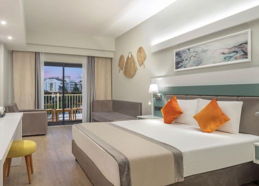 Основен ресторант, турски а-ла-карт ресторант, италиански а-ла-карт ресторант, лоби бар, бар при басейна, снек бар, бар на плажа, сладкарница, открит басейн с джакузи, аквапарк със 7 водни пързалки, закрит отопляем басейн, SPA център с турска баня и сауна, анимационна програма със спортни и развлекателни дейности, жива музика, тематични вечерни представления, безплатен безжичен интернет на територията на целия хотел.