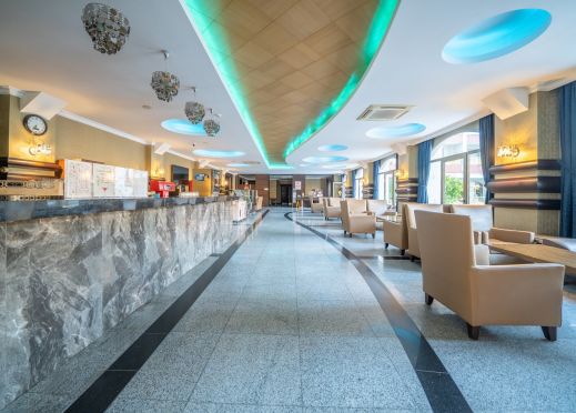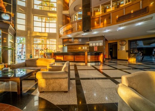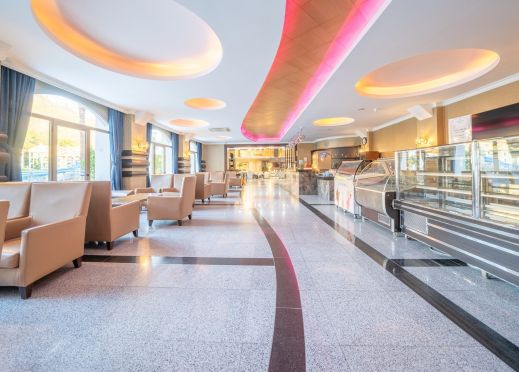 Основен ресторант, 3 бара, открит басейн, закрит басейн, детски басейн, водна пързалка, СПА център, детски клуб, аеробика, билярд, дискотека, анимация, магазини, конферентни зали. Безплатни услуги: сауна ,турска баня, фитнес, WI-FI интернет в лоби, тенис на маса. Платени услуги: билярд, интернет кафе, пералня, лекар, детегледачка ,Спа и Уелнес център Плаж: Градски плаж - Чадъри и шезлонги при басейна – безплатни, а на плажа – платени.