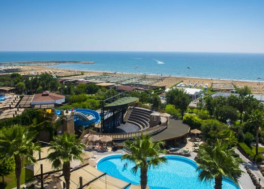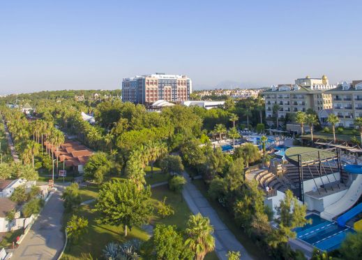 Основен ресторант, а ла карт ресторанти(турски и стек), 5 бара, дискотека, 3 открити басейна и 1 закрит басейн (отопляем), 3 водни пързалки, Спа център, 2 конферентни зали, магазини, пералня, фризьорски салон, лекар на повикване.Безплатни услуги: турска баня, сауна, фитнес, лека анимация, гала вечер (веднъж на 25 седмици), дискотека, степ, аеробика, плажен волейбол, водна гимнастика, тенис на маса, дартс, мини библиотека, WI-FI (на лоби). Платени услуги: масажи, водни видове спорт, игрални автомати, билярд, боулинг. За децата: детски клуб (за деца от 4 до 12 г.), детски басейн, детска площадка, детска анимация, мини-диско.