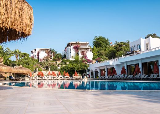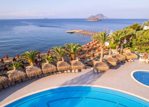 Намира се на 50 км от летище Бодрум, на 20 км от центъра на Бодрум, на 3 км от центъра на Тургутрейс, на брега на морето. Построен 1989 г., на обща площ от 36 000 м². Реновиран 2017 г.