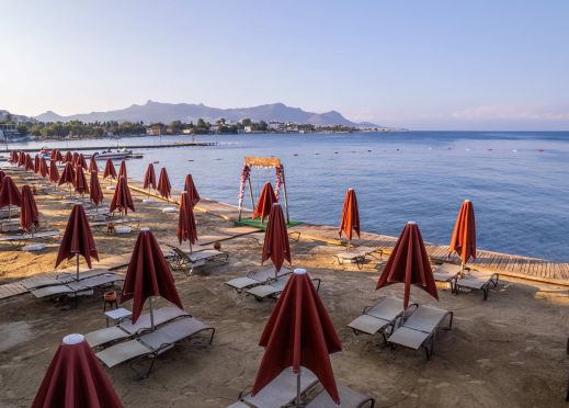 Собствен, пясъчен, платформа. Чадъри, шезлонги и плажни кърпи на плажа и при басейна - безплатно.