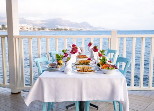 Основен ресторант, 2 а-ла-карт ресторанта (рибен и италиански - 1 безплатно посещение на 1 от ресторантите при минимум 7 нощувки, от 01.05.2026 - 30.09.2026), сладкарница, 3 бара, 3 открити басейна, 2 водни пързлки, СПА център, дискотека, магазини, паркинг.