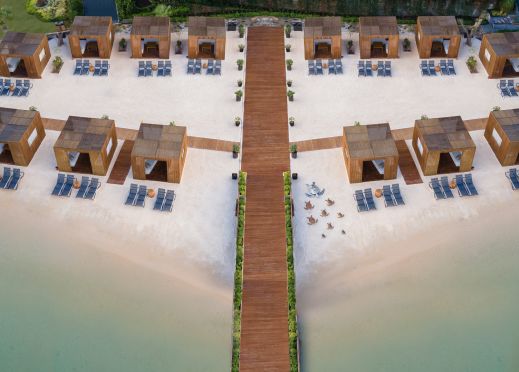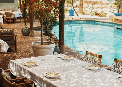Частни вили: Aphrodite Villa 190 м² (гледка към морето, на първия етаж: хол, трапезария, кухня, баня; на втория етаж – 2 спални с врата, 2 бани, гардеробна, балкон, собствен басейн (1.40м дълбочина), VIP зона на плажа, максимум 5 души капацитет, VIP обслужване). 14 Apollon Villa 280 м² (с гледка към морето, на първия етаж: хол, трапезария, кухня, спалня с врата, гардеробна; на втория етаж – 3 спални с врати, 3 бани, балкон, тераса; собствен басейн (1.40м дълбочина), VIP зона на плажа, максимум 7 души капацитет, VIP обслужване). 11 Poseidon Villa 330 м² (с гледка към морето, на първия етаж: хол, спалня с гардеробна, трапезария, кухня, баня; на втория етаж: 4 спални с врати, 4 бани, балкон, тераса; собствен басейн, максимум капацитет 8 души, VIP зона на плажа, VIP обслужване); 3 Hermes Villa (365 m², 1 основна спалня + 4 допълнителни, просторна дневна, собствен басейн), Zeus Villa (6 спални, дневна, трапезария, 5 бани – 450 м²), Presidential Villa (800 m², 6 спални, дневна, трапезария, възможност за личен готвач). *Информация за цени за частните вили ще получите при индивидуално запитване.