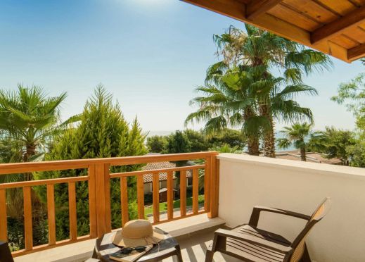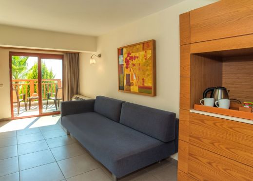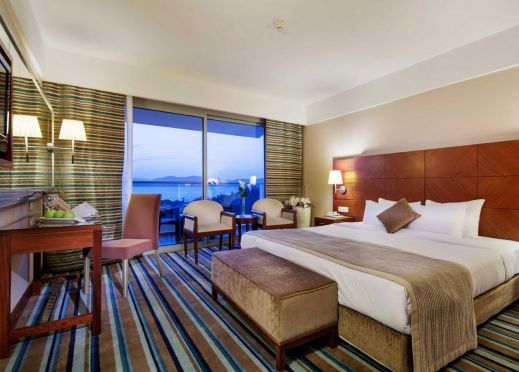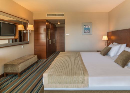 Хотелска част (девететажна сграда) с общо 320 стаи, от които: стандартни стаи с изглед градина (25 м²), с частичен изглед море (30 м²) и с изглед море (25 м²), супериор стаи с изглед море (40 м²), джуниър стаи с изглед градина (1 спалня - 31 м²), фамилни стаи с изглед градина (2 спални, 1 баня - 43 м²), стандарт суит (1 спалня, всекидневна, 1 баня - 50 м²), супериор суит  (2 спални, всекидневна с кухненски бокс, 3 бани -119 м²), бизнес суит (1 спалня, всекидневна - 166 м²), стандарт суит с тераса (1 спалня, 1 баня, тераса с джакузи - 40 м²), стандарт суит с градина и тераса (1 спалня, всекидневна, 2 бани, градина с джакузи - 54 м²), супериор суит с басейн (2 спални, всекидневна, 2 бани, тераса с джакузи и басейн - 147 м²),