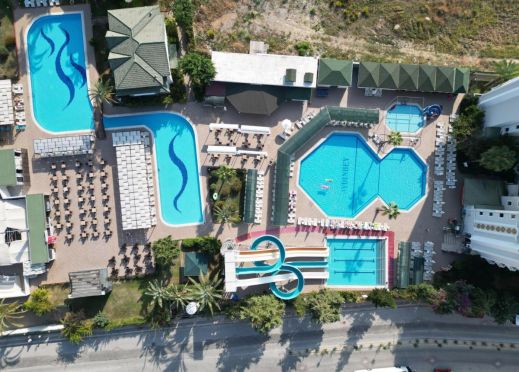 Намира се на 100 км от летище Анталия, на 110 км от центъра на Анталия, на 20 км от центъра на Алания, на 100 м от брега на морето. Построен 2003 г., на обща площ от 17 000 м2. Реновиран 2021 г.