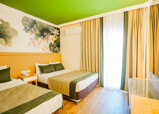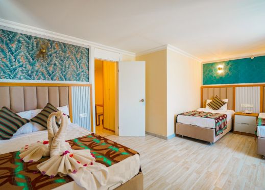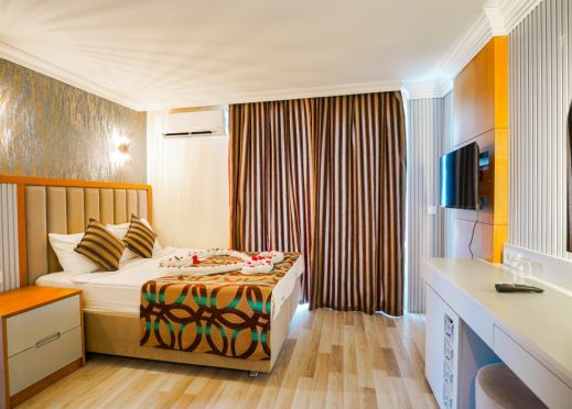 Намира се на 90 км от летище Анталия, на 105 км от центъра на Анталия, на 35 км от центъра на Алания, на 30 км от центъра на Сиде, на брега на морето. Построен 2003 г., на обща площ от 16 000 м2. Реновиран 2012 г.