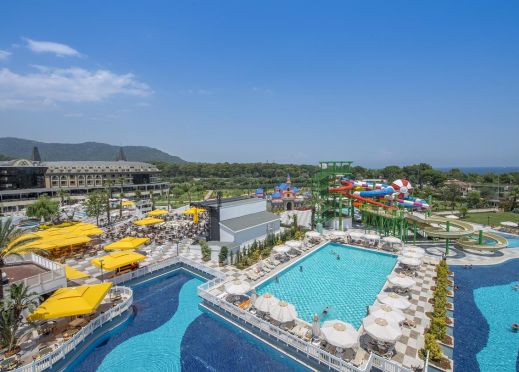 Намира се на 40 км. от летище Анталия, на 30 км. от центъра на Анталия, на 8 км. от центъра на Кемер, в селище Гюйнук, на 168 м. от брега на морето. Построен през 2007г. с обща площ 100.000 м2, реновиран през 2016-2017г.