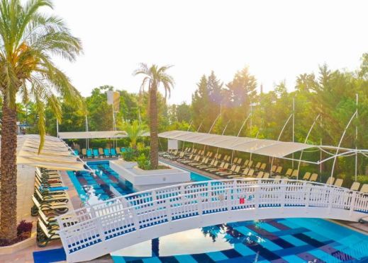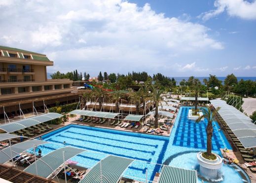 Основен ресторант, а - ла - карт ресторант (с предварителна резервация), 4 бара, 3 открити и 2 закрити басейна, водни пързалки, магазини, СПА център, дискотека, кино, конферентни зали, паркинг. За децата: Детска площадка, мини клуб (4-12 г.), 2 детски басейна – външен и вътрешен, водни пързалки, анимация. Безплатни услуги: Турска баня, сауна, джакузи, фитнес, дартс, тенис на маса, тенис корт (с предварителна резервация), баскетбол, аеробика, водна гимнастика, кино, жива музика, анимация, интернет. Платени услуги: Масаж, фризьор, търговски център, билярд, боулинг, джаги, интернет кафе (с предварителна резервация), видеоигри, химическо чистене, лекар, водни спортове, наем на топки и ракети за тенис, осветление за тенис корта.