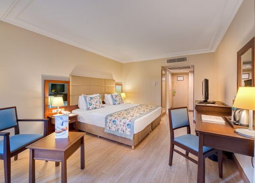 Стаи Main building: 151 Standard room (25 м2), 151 Standard room sea view (с изглед море - 25 м2), 10 Family room (2 спални, 1 баня - 31 м2), 20 Superior room (50 м2), Handicapped room (стая за инвалиди -25 м2).