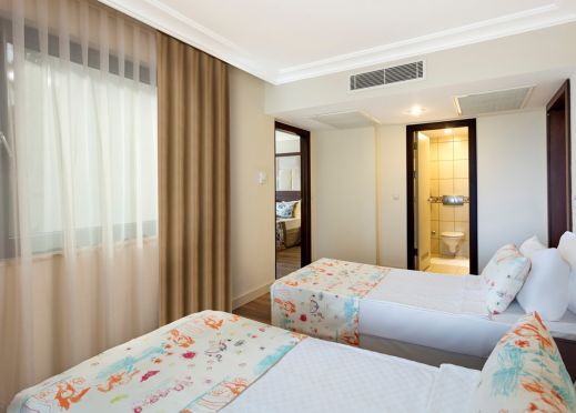 Стаи Residence: Residence standard room (37 м2), Residence Family room with 2 bathrooms (2 спални, 2 бани - 50 м2), ), Residence Family suite (2 спални, 1 хол с кухненски бокс, 1 баня + джакузи - 112 м2),