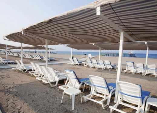 Собствен, пясък/чакъл. Кей. Бар на плажа - безплатно. При басейна и на плажа: чадъри, шезлонги, матраци – безплатно. Плажни кърпи – безплатно.