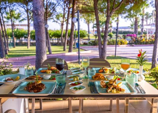 Ultra All Inclusive – закуска, обяд, вечеря на шведска маса,  междинни хранения, алкохолни и безалкохолни напитки без лимит (съгласно концепцията на хотела).