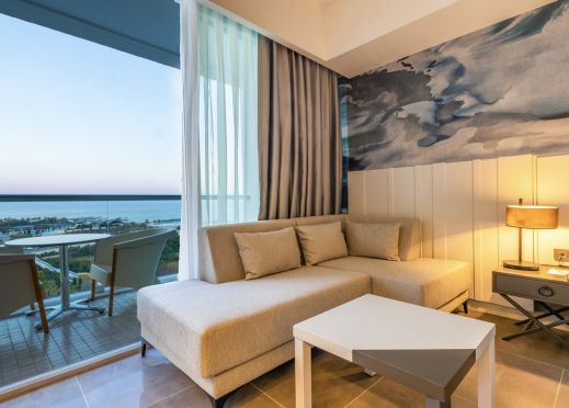 Хотелът разполага с общо 400 стаи, разположени в една 8-етажна сграда Main Building, от които 304 стандартни стаи Standard room (изглед суша или море - 28 м2), 96 Junior Suite Room (2 стаи свързани с врата - 35 м2). Всички стаи са оборудвани с климатик, телевизор, телефон, баня с душ/вана, сешоар, интернет (безплатен), минибар (безплатен), сет за кафе/чай, сейф (безплатен). Почистване на стаите и смяна на кърпи и спално бельо - ежедневно.