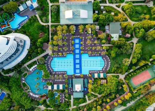 Хотелът се намира на 10 км. от летище Анталия, на брега на морето. Построен с обща площ от 62000м2.