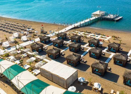 Собствен пясъчен плаж. Има кей. Бар на плажа: безплатно. На плажа и при басейна: чадъри, шезлонги, матраци – безплатно. Плажни кърпи: безплатно. Шатри на плажа – срещу заплащане.