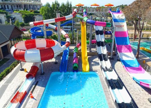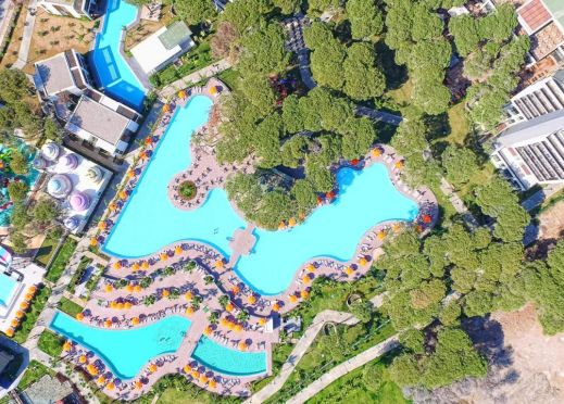 Основен ресторант, 5 a лa карт ресторанта (с предварителна резервация), 9 бара, 5 открити и 1 закрит басейн, 4 водни пързалки, аквапарк, мини клуб(4 - 12г.) магазини, Спа център, дискотека, TВ зала, 9 конферентни зали, билярд, боулинг, тенис корт, фитнес цетър, дартс, тенис на маса, плажен волейбол, паркинг.