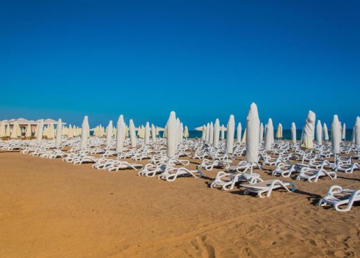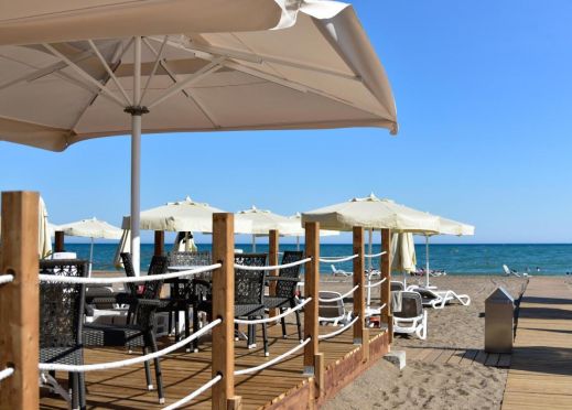 Собствен, на 450 метра от хотела. Чадъри, шезлонги и матраци на плажа и при басейна – безплатно, плажни кърпи – срещу депозит.