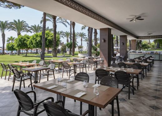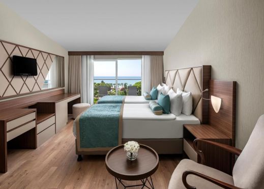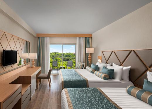 Стаи Main Building: 265 стандартни стаи, от които Standard room land view (изглед суша - 28м2), Standard Room Side Sea View (изглед частично море - 28м2), 3 Handicap room (изглед суша - 30 м2), 12 Executive room (изглед суша - 38 м2), 8 Family room (2 спални, всяка с двойно и единично легло, 2 бани, изглед суша - 56 м2), 10 Connection Family room (2 спални, една стая с 1 двойно и 1 единично легло, и една стая с 2 единични легла, 2 бани - 56 м2), 4 King Suite (2 спални, една с двойно легло и една с 2 единични легла, всекидневна, 2 бани, изглед море - 128 м2).
