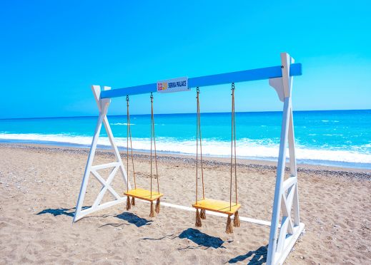 Собствен пясъчно-чакълест плаж. Чадъри, шезлонги на плажа и басейните - безплатно.