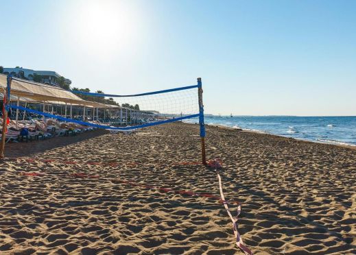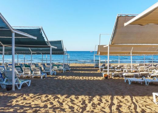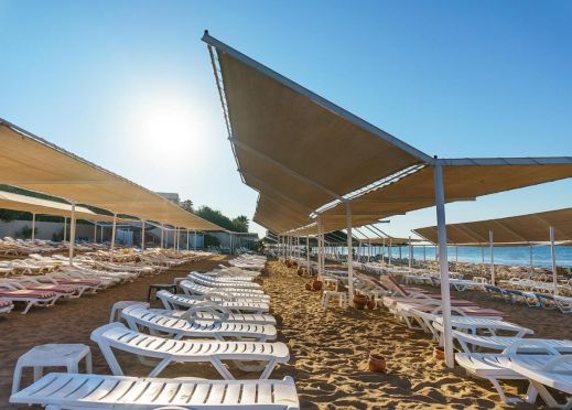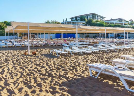 Собствен, на 500 м. от хотела, пясъчен. Безплатен шатъл до плажа (в определен часови диапазон). Чадъри, шезлонги и плажни кърпи на плажа и при басейна – безплатно.