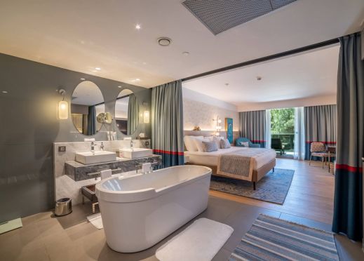 Хотелът разполага с общо 418 стаи, разпределени в няколко зони – Adults-only (16+), Mixed и Family-friendly, осигурявайки на всеки гост преживяване по неговия вкус.