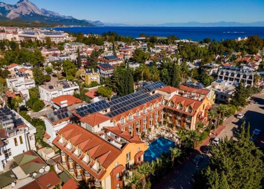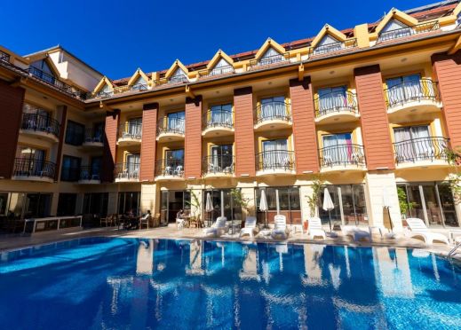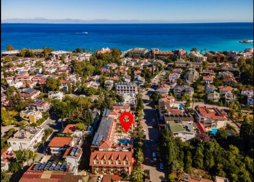 Хотелът е разположен на 55 км. от Анталия, на 100 м. центъра на Кемер, на 220 м. от брега на морето. Построен през 2006 г. с обща площ 2100 м2.